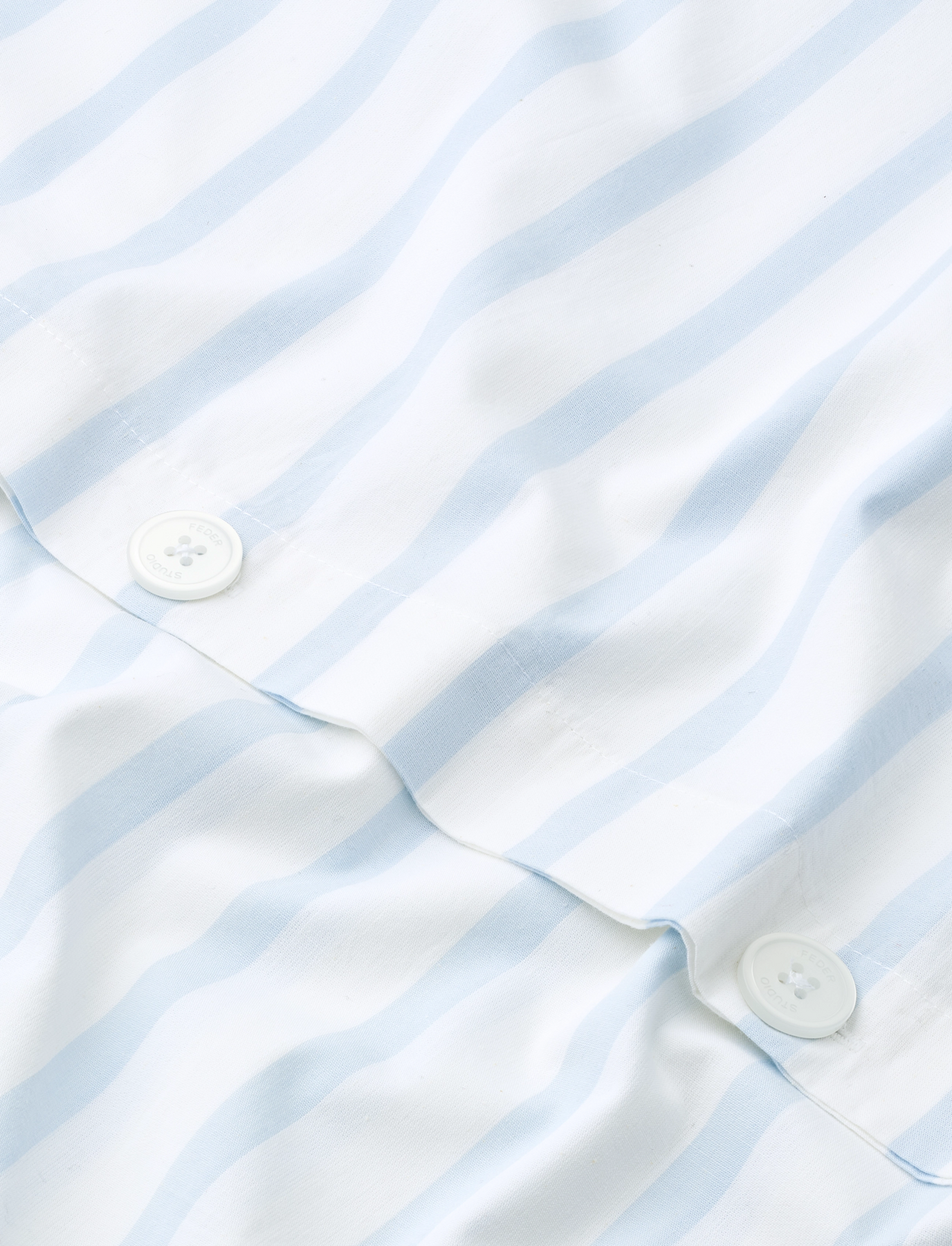 Organic children bedding in washed cotton percale for a very beautiful understated look and handfeel. Pillow case in 40x45 cm with envelope closure and duvet cover in 100x140 cm with button closure. The bedding is delivered in a matching fabric bag with tie strings and French seams inside.