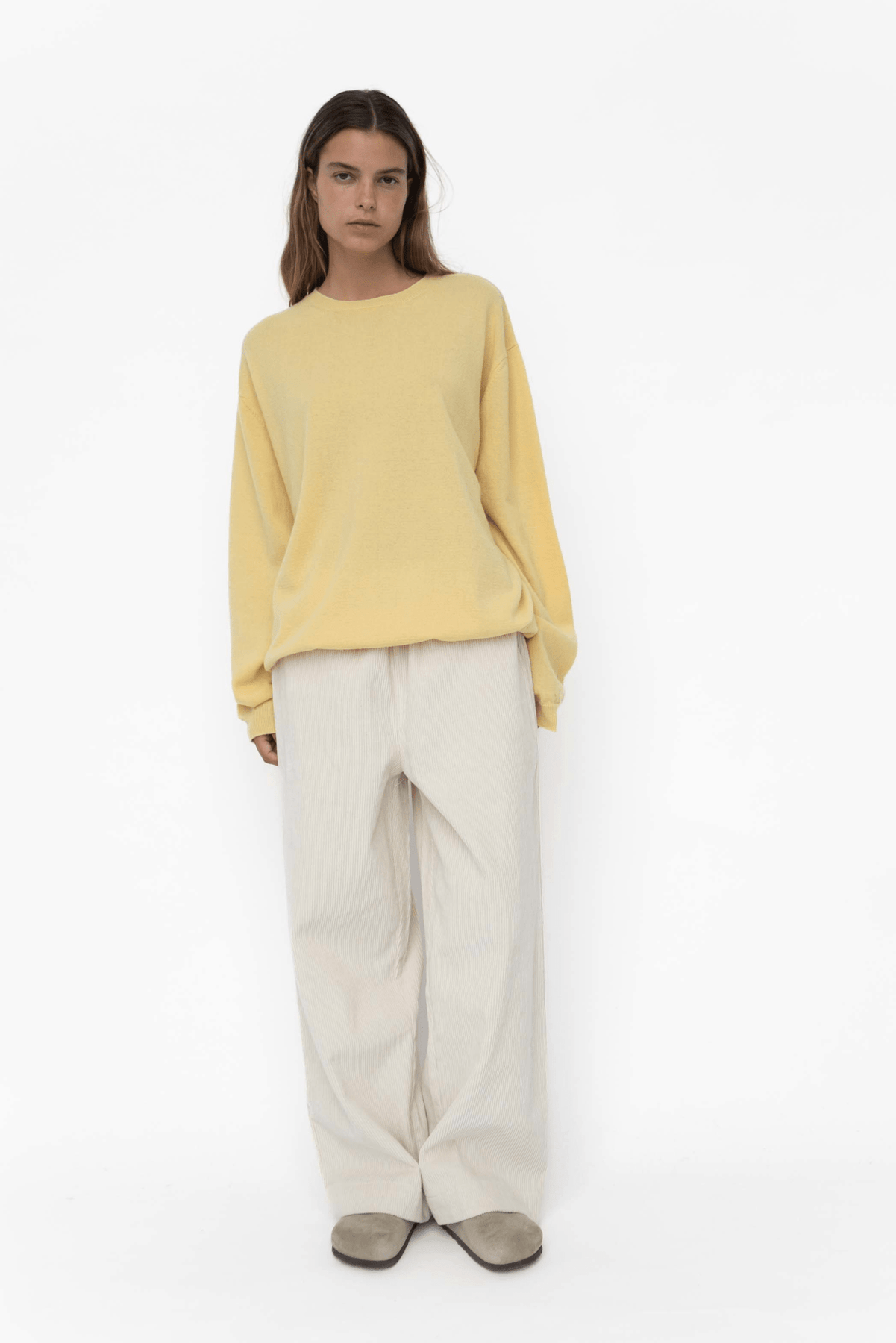 A classic knit in 100% recycled GRS merino wool. This quality peels minimally, if at all, so your beautiful knitwear will stay that way for a long time. It's a timeless knit with a slightly loose fit and a beautiful round neck that can be used across your entire wardrobe. Use it with our Agnes Skirt in wool for a wonderfully cozy and warm set for the cold season. Or together with our Bella Pants in corduroy for a functional everyday outfit.